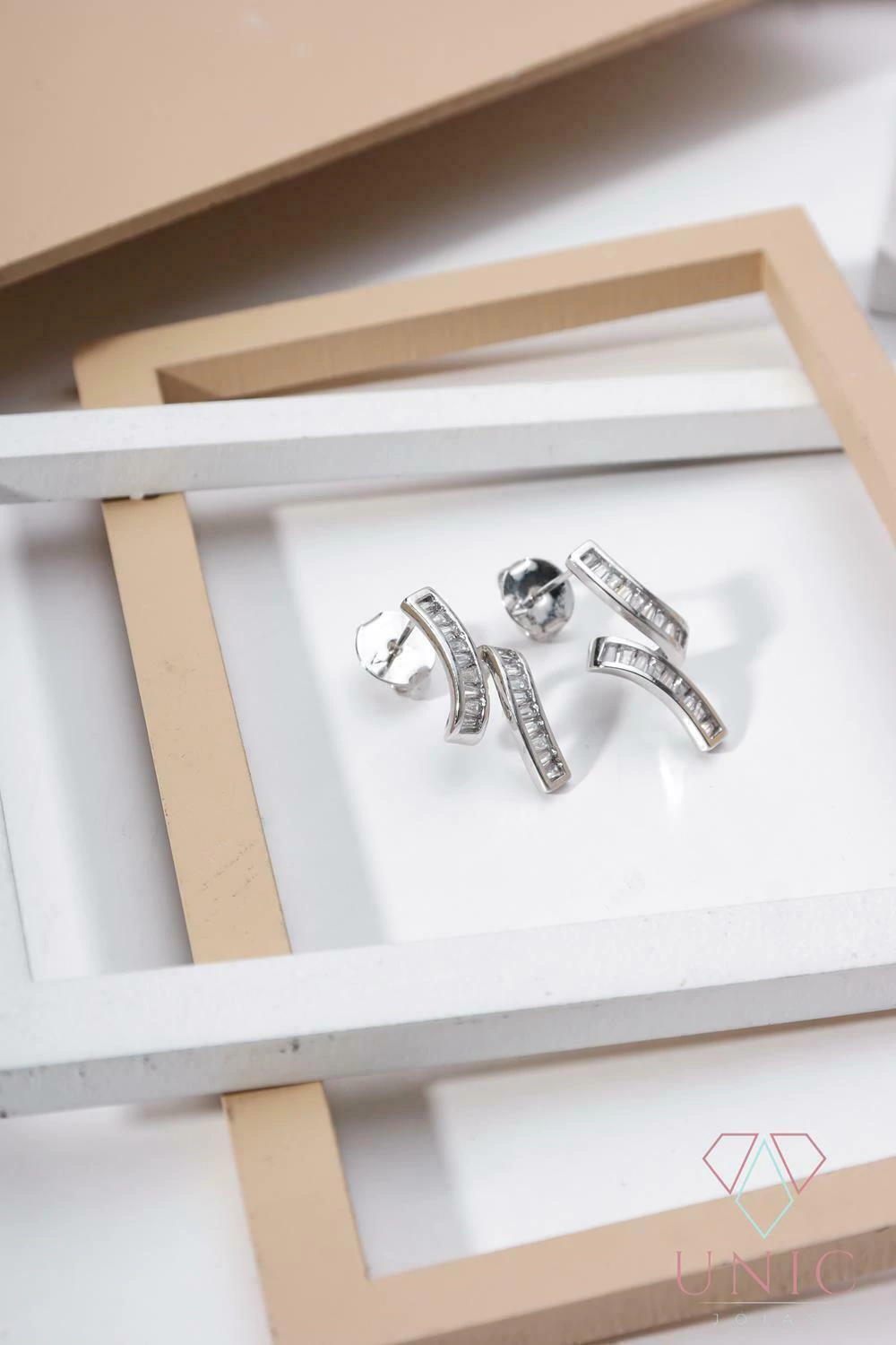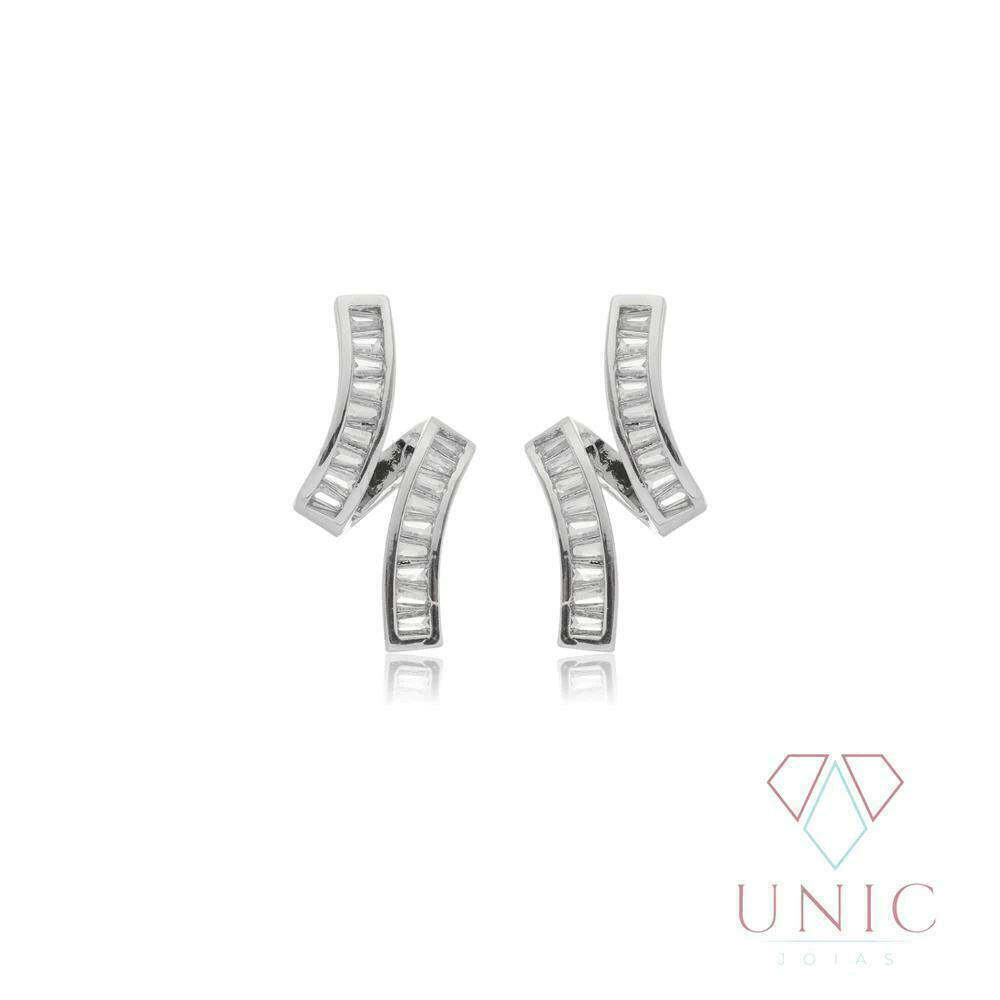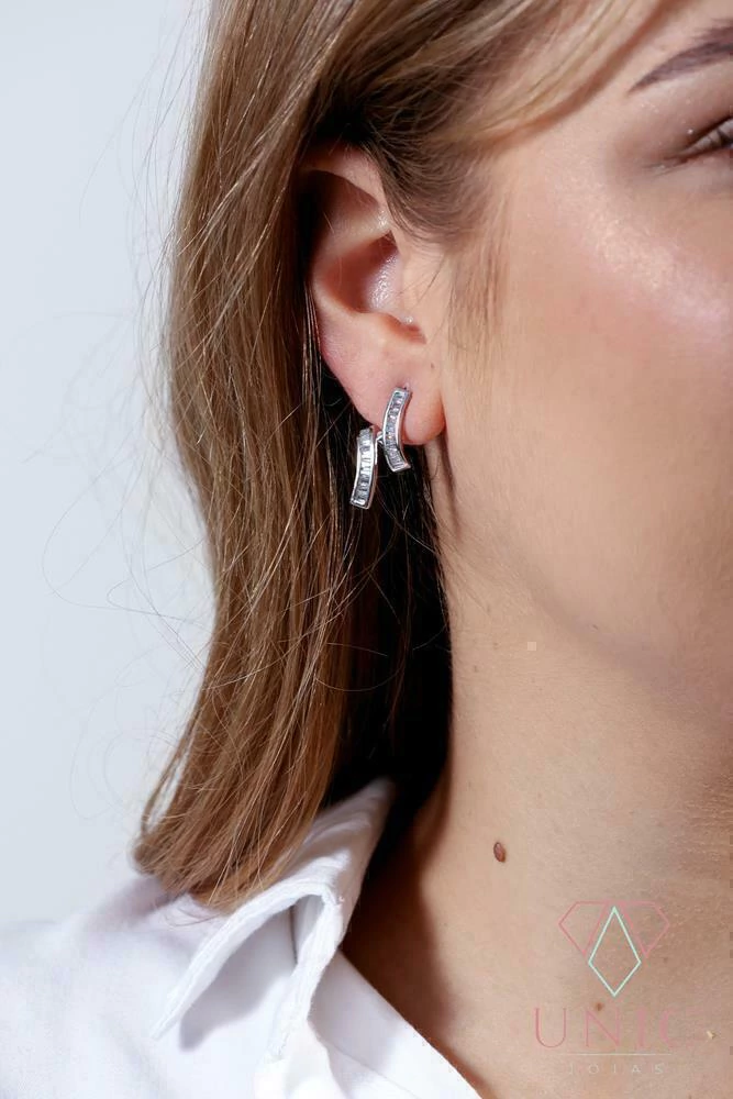 Os brincos Clara em formato moderno são perfeitos para mulheres que desejam um acessório elegante e moderno. Com um acabamento em ródio, cravação no estilo trilho e várias zircônias cristal, eles adicionam um toque de brilho e sofisticação a qualquer look.