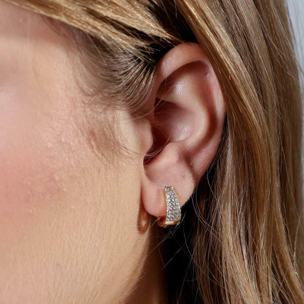 O brinco Daphne é uma argola elegante com zircônias cristal em cravação pavê e banhada a ouro. Este brinco é perfeito para quem busca uma opção sofisticada e elegante para adicionar um toque de brilho ao visual. As zircônias cristal em cravação pavê adicionam um brilho intenso ao brinco, enquanto o banho de ouro adiciona um acabamento elegante e duradouro. O design da argola é um clássico atemporal que se adapta a qualquer estilo de moda. Este brinco é uma escolha versátil para uso diário ou ocasiões especiais.