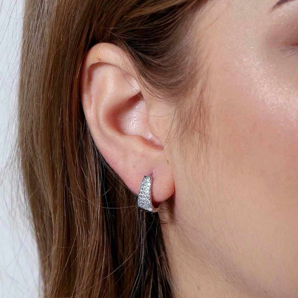 O brinco Daphne é uma argola elegante com zircônias cristal em cravação pavê e banhada em ródio. Este brinco é perfeito para quem busca uma opção sofisticada e elegante para adicionar um toque de brilho ao visual. As zircônias cristal em cravação pavê adicionam um brilho intenso ao brinco, enquanto o banho de ouro adiciona um acabamento elegante e duradouro. O design da argola é um clássico atemporal que se adapta a qualquer estilo de moda. Este brinco é uma escolha versátil para uso diário ou ocasiões especiais.