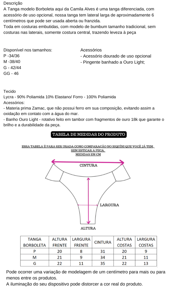 M - 38/40 G - 42/44 GG - 46 P - 34/36