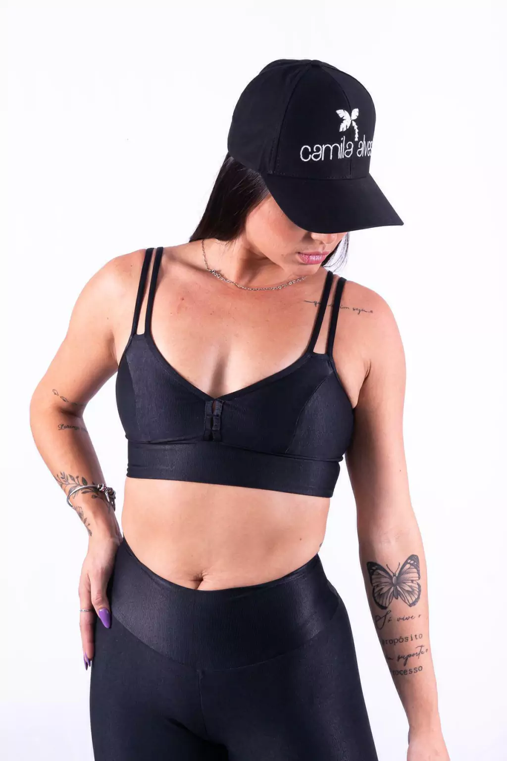 Top com Bojo Removível: O top deste conjunto é projetado com bojo removível, oferecendo suporte personalizado e versatilidade para atender às suas preferências. Mantenha-se confortável e confiante, adaptando o top de acordo com suas necessidades e estilo de treino.