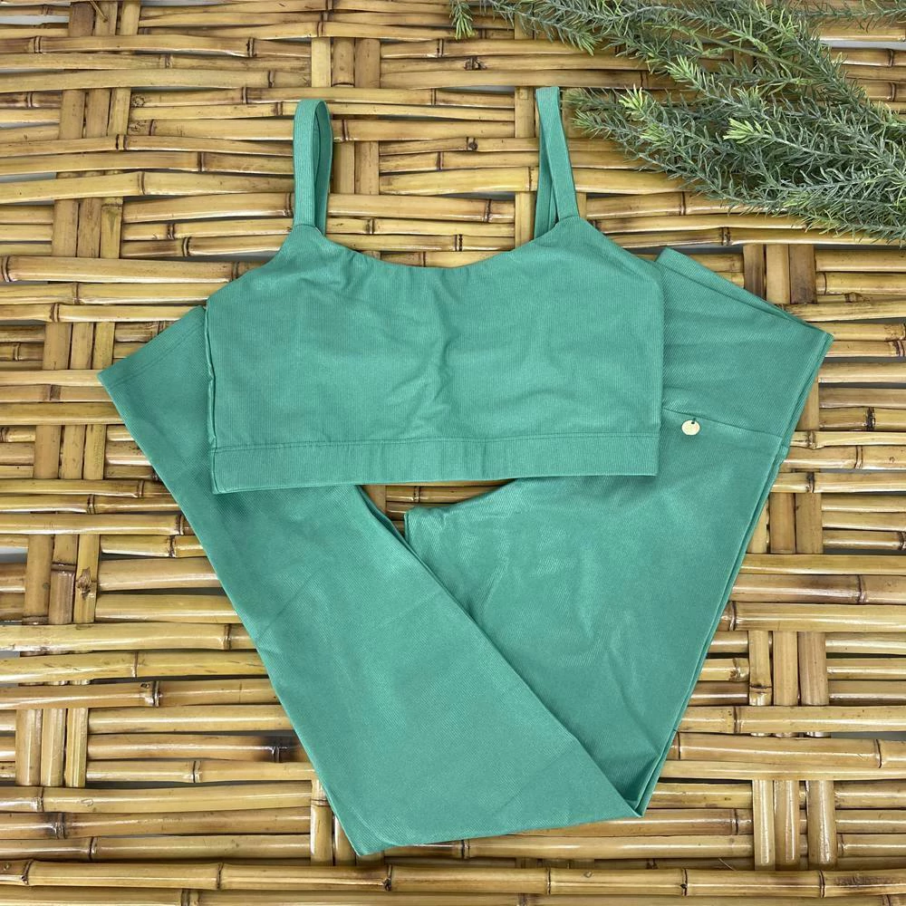 Conjunto Fitness Compressão Top Básico e Calça Básica Verde Bandeira
