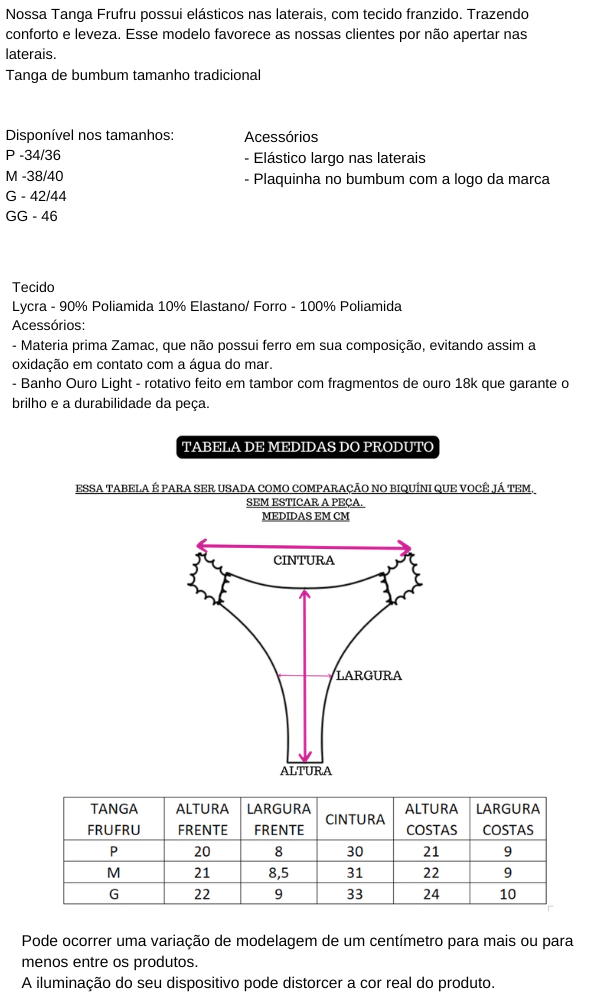 M - 38/40 G - 42/44 GG - 46 P - 34/36