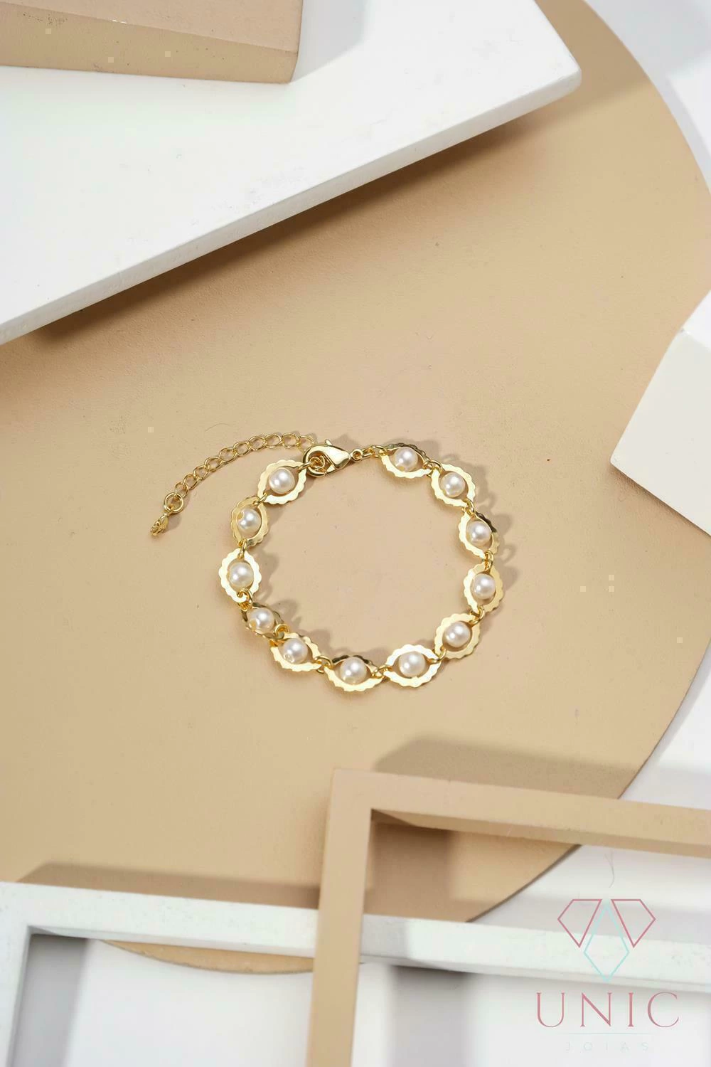 A pulseira Sea é uma joia elegante com um banho de ouro deslumbrante e um design encantador de pérolas. Cada pérola é cuidadosamente selecionada e disposta em uma corrente delicada, criando um visual refinado e sofisticado. A pulseira Sea apresenta um estilo clássico e atemporal que complementa perfeitamente qualquer visual, do casual ao formal. As pérolas adicionam uma sensação de elegância e luxo, enquanto o banho de ouro proporciona um brilho radiante e duradouro. A pulseira Sea é uma escolha perfeita para quem busca uma joia refinada e sofisticada.